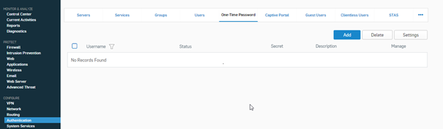 utilisateur en allant sous Authentification > Mot de passe à usage puis