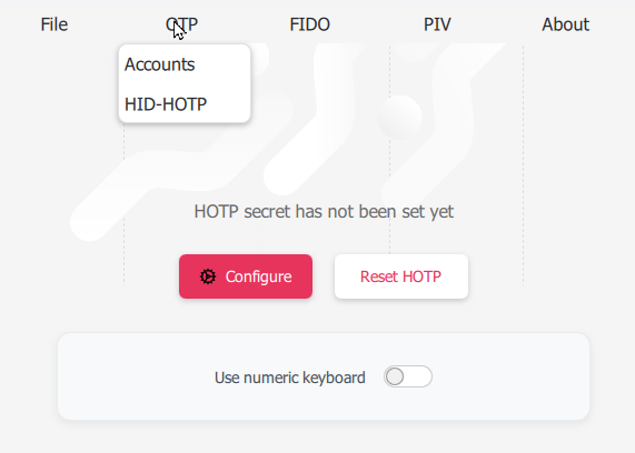 Note: HID-HOTP is disabled by default on devices starting from Release 3.3. If you need HID-HOTP functionality (for applications such as UserLock), make sure to enable the HID channel.