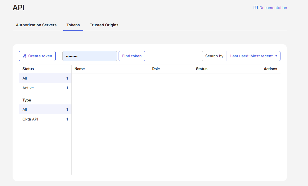 1. In the Admin Console, go to Security → API.2. Open the Tokens tab and click "Create token".